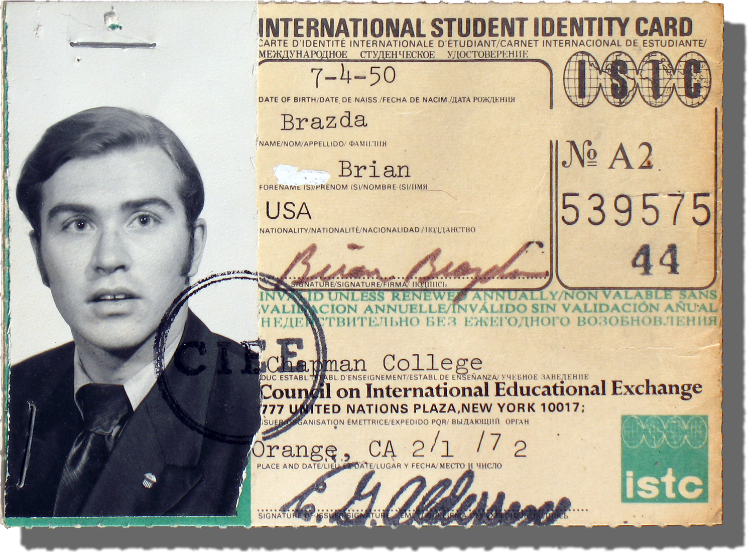 Chapman / WCA International Student - 1972 |