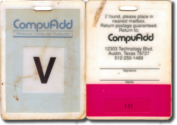 CompuAdd Visitor Pass while training them on AVBASIC (1990)